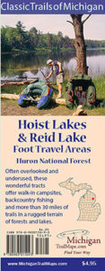 The Hoist Lakes & Reid Lake Foot Travel Areas map is part of the Classic Trails of Michigan series from MichiganTrailMaps.com, your trusted companion for trail information. The large format map measures 11 by 17 inches, is printed on durable card stock and coated to be water resistant. Includes all distance markers, contour lines, historic buildings and ruins. Best of all, when folded it fits in your back pocket or the side pouch of your pack.