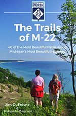 FinalCoverMichiganTrailMaps.com is proud to announce the release of Jim DuFresne’s newest guidebook; The Trails of M-22. The full-color, 192-page book focuses on 40 of the most beautiful paths that are accessed from what many consider Michigan’s most beautiful highway.  The 116-mile state highway, that wraps around Michigan’s little pinky like a glove, passes through the heart of Sleeping Bear Dunes National Lakeshore, the state’s most popular national park, and serves as the gateway to more than two-dozen preserves protected by the Grand Traverse Regional Land Conservancy in Benzie County and the Leelanau Conservancy in Leelanau County as well as state parks and rail-trails.