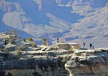 From the rim a walk to the bottom looks deceivingly easy. But the trails to the Colorado River are narrow, steep in places and offer little shade. The hike back up is a never-ending ascent that takes twice as long. The South Kaibab Trail is the shortest route to the bottom at 6.8 miles. Bright Angel Trail is an easier descent but longer at 9.3 miles. Either way it’s a 11- to 14-hour round-trip trek to the floor of the canyon, the reason park rangers have to rescue more than 250 hikers a year.