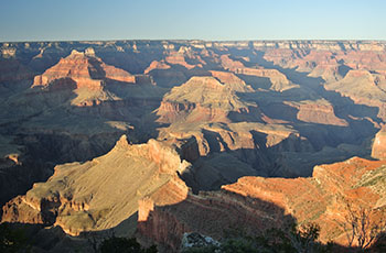 The other amazing aspect of the Grand Canyon is that there is no hint at what lies on the edge of the rim, even when you enter the park. From the San Francisco Peaks Range on the north side of Flagstaff, the land soon flattens out into a high plateau covered with a scattered forest of spruce and fir. At this point you see neither mountains nor a canyon.