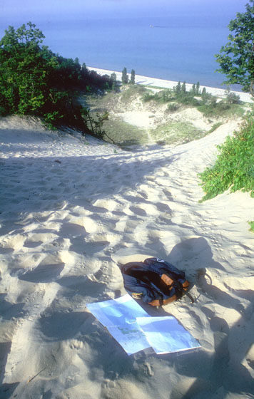 The Baldtop loop is a 2-mile hike around the park’s tallest dune and the most scenic walk in the park. Though short, it can be a workout because of the steep climb to Baldtop’s excellent views and stretches through the soft sand of open dunes. It also includes stretch along Lake Michigan where the beach is wide and somewhat private, even though you can view summer cottages at each end.