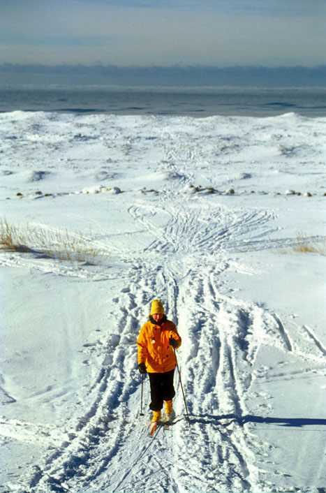 Mountain biking is not allowed on any of the park's trails but Nordic skiing is a popular activity in the winter. Hoffmaster maintains 3 miles of ski trails with a trailhead and parking, lot at the south end of the park road. The trail forms three loops through rolling to hilly terrain with runs rated for novice to advanced skiers. The trails are not groomed, nor is there a ski rental concession on site.