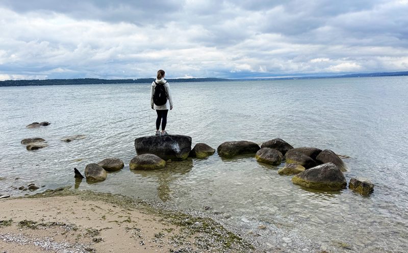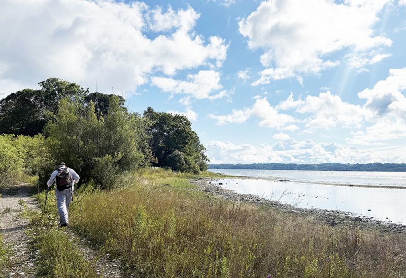 Parts of this wide trail follow a 1903 logging road, providing for scenic and easy hiking. Post 10 at Mile 1.3 is where you head west to reach beautiful West Beach. North Shore Trail continues from here as a foot path that remains close to the shore, weaving in and out of the forest to views of the bay until reaching Post 13 at Mile 2.