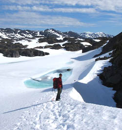The Chilkoot is unquestionably the most famous trail in Alaska and often the most popular as more than 3,000 people spend three to four days following the historic route every summer. It was the route used by the Klondike gold miners in the 1898 gold rush, and walking the well-developed trail is not so much a wilderness adventure as a history lesson. It’s a 34-mile walk that includes the Chilkoot Pass, a steep climb up to 3525 feet, where most hikers scramble on all fours over the loose rocks and boulders.