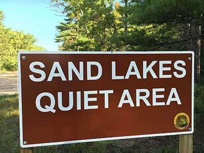 Located in the Pere Marquette State Forest, Sand Lakes was designated a non-motorized “quiet area” by the Michigan DNR in 1973.