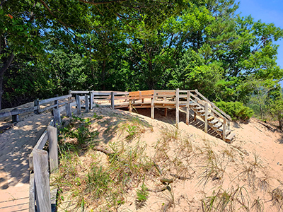 When combined with a segment of the Sable River Trail, the Skyline becomes the heart of a 1-mile loop, a series of staircases and boardwalks that wind along a forested ridge. Once the stairs are conquered, the trail is easy, as young hikers – and old – pause often to take in sweeping views of Lake Michigan and, on clear days, even a glimpse of the distant dunes at Silver Lake State Park.